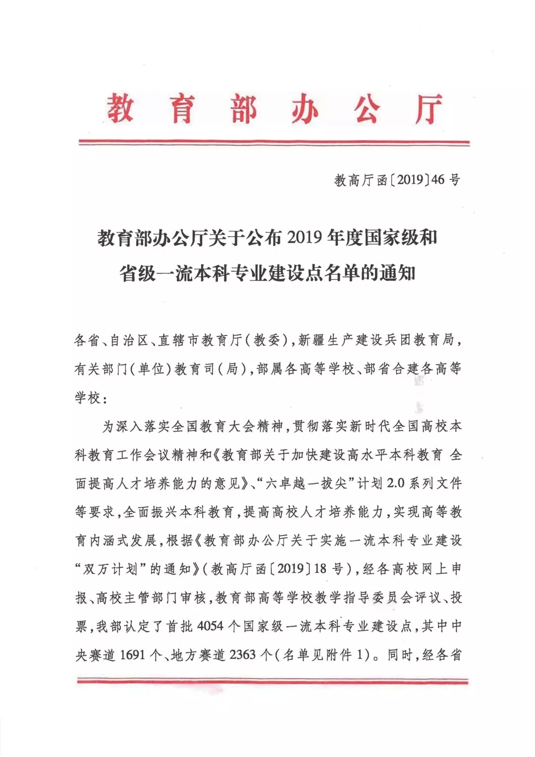 2019年12月24日,教育部办公厅公布2019年度国家级和省级一流本科专业建设点名单。伟德国际1949官方网站法学专业入选国家级一流本科专业建设点。