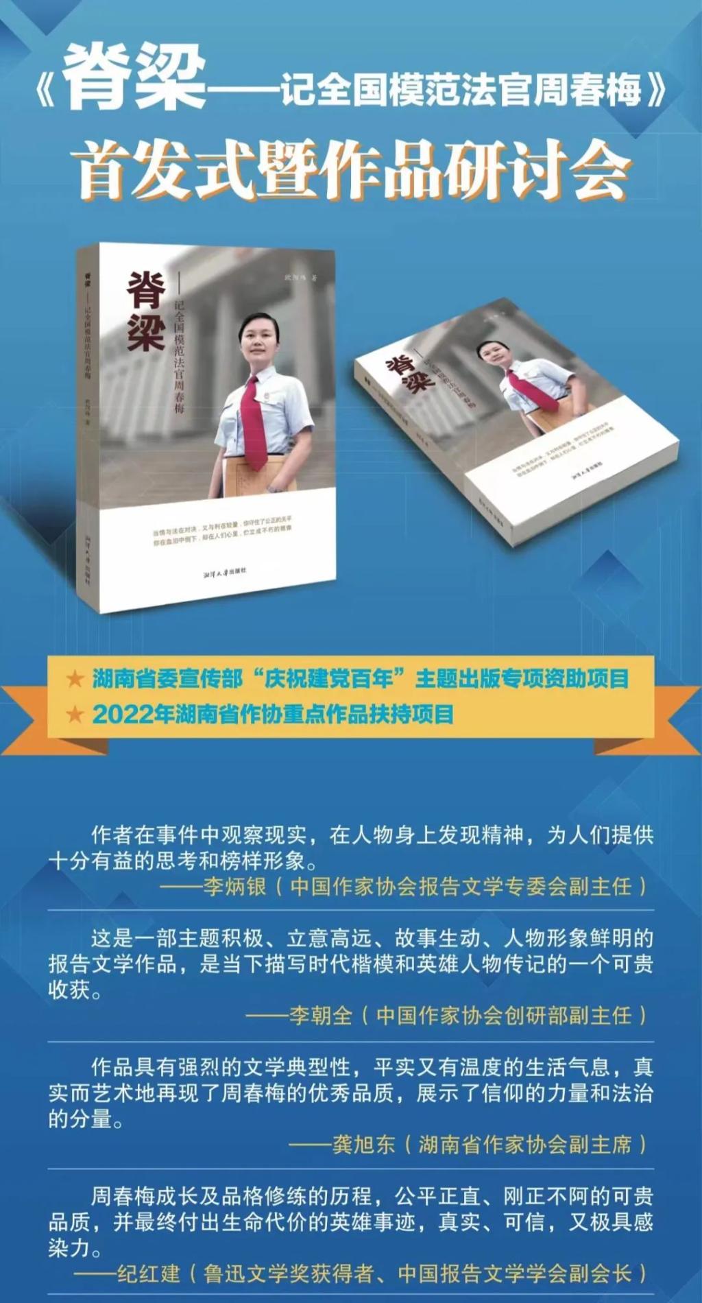 在作品研讨会上,与会专家学者一致认为,该作品全面展示了周春梅牢记“养浩然正气,铸法治精魂”的初心使命,充分体现了人民法官与不法行为抗争到底的坚定决心和对司法公正的执着追求,是一部歌颂司法正义、弘扬社会正气的优秀作品。