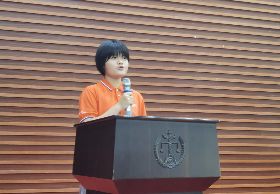 随后,2021级法律硕士纪检监察班符甜同学作为老生代表上台发言。符甜同学结合自己在湖大读书学习的经历,与同学们分享了感悟。首先,学习上以专为业。同学们可以把学习作为一种爱好融入到生活中去,多和老师聊聊未来的规划,多多尝试找到自己的专属答案。其次,勇于尝试突破舒适圈。必须重视法律实践,实践出真知,在脚踏实地的实践中去认识和体味真正的学问。