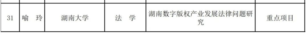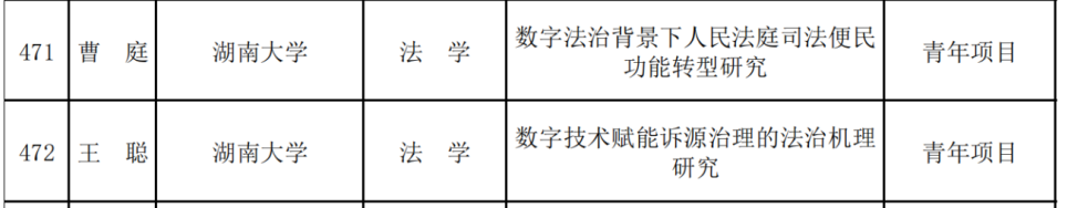 2023年2月4日,2022年度湖南省社科基金年度项目拟立项名单公示。我们喻玲教授的“湖南数字版权产业发展法律问题研究”获得重点项目资助,赵香如副教授的“我国企业数据的治理模式创新研究”获得一般项目资助,王聪助理教授的“数字技术赋能诉源治理的法治机理研究”和曹庭博士后的“数字法治背景下人民法庭司法便民功能转型研究”获得青年项目立项资助。