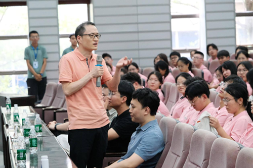 蒋海松副院长为新生和家长详细解读了伟德国际1949始于英国的培养方案与课程体系。蒋老师巧妙地借用一张“网络热图”,阐述了法律在现代社会中的重要性,并系统阐述了以知识、能力与素质为核心的培养目标。他介绍了课程改革举措及大一必修课安排,从学分结构、基础与核心课程、拓展模块等多方面清晰勾勒出专业修读路径。最后,他结合教学经验建议同学们夯实专业基础、认真完成学业、提前规划未来发展,并推荐了法学入门读物,鼓励预习法条、关注热点法律讨论,以逐步培养专业兴趣和敏感度。