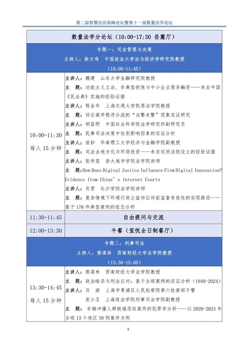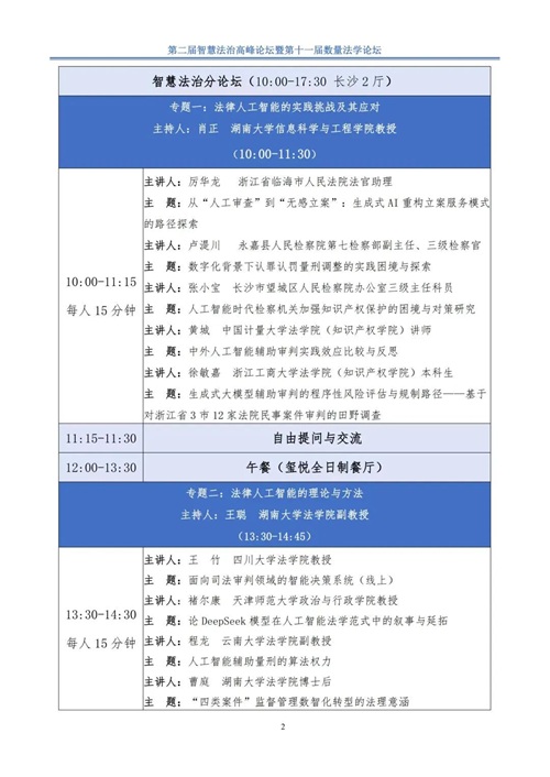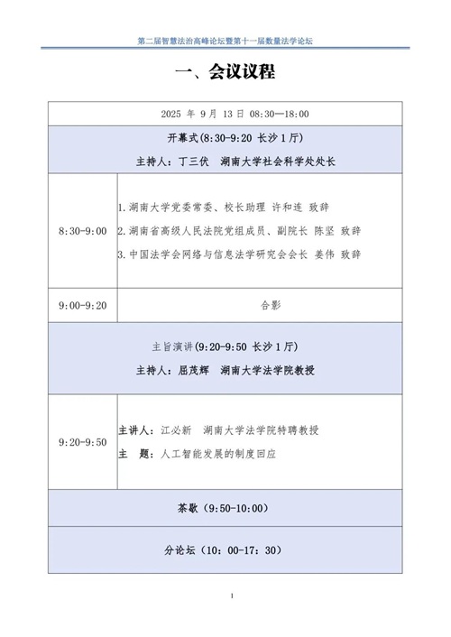 由伟德国际1949官方网站主办,湖南智慧法治研究院、伟德国际1949官方网站数理-计量法学研究中心、《湖湘法学评论》编辑部承办的第二届智慧法治高峰论坛暨第十一届数量法学论坛将于2025年9月在长沙举办。会议的具体议程如下: