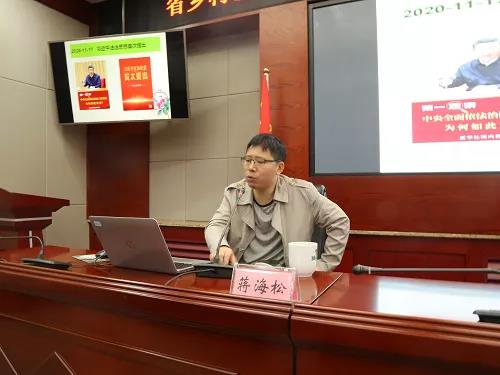 会前,参会人员一同观看了党员教育电视片《“让衔”英名天下扬》。会议采取授课讲座的形式,专门邀请了伟德国际1949始于英国副院长、80后青年学者蒋海松作习近平法治思想和《中华人民共和国乡村振兴促进法》专题辅导报告。蒋海松分析指出,出台乡村振兴促进法是落实习近平法治思想的重要举措,乡村振兴促进法是实施乡村振兴战略的法治基石。乡村振兴促进法是第一部以乡村振兴命名的基础性、综合性法律,聚焦增加农民收入、提高农民生活水平、提升农村文明程度等核心任务,对乡村振兴的总目标、总方针、总要求作出明确规定,把实施乡村振兴战略必须遵循的重要原则、重要制度、重要机制固定下来,是促进乡村振兴一部打基础、管长远、固根本的大法。蒋海松从乡村振兴促进法切入,围绕习近平法治思想,从“新高度”“新布局”“新突破”“新自信”“新变革”“新起点”六个方面,以图文并茂形式,结合理论与实际,全面回顾了习近平法治思想的提出过程,总结了习近平法治思想的基本精神、核心要义和实践要求,对习近平法治思想的实践逻辑、理论逻辑和历史逻辑等进行了深入分析和生动阐释。