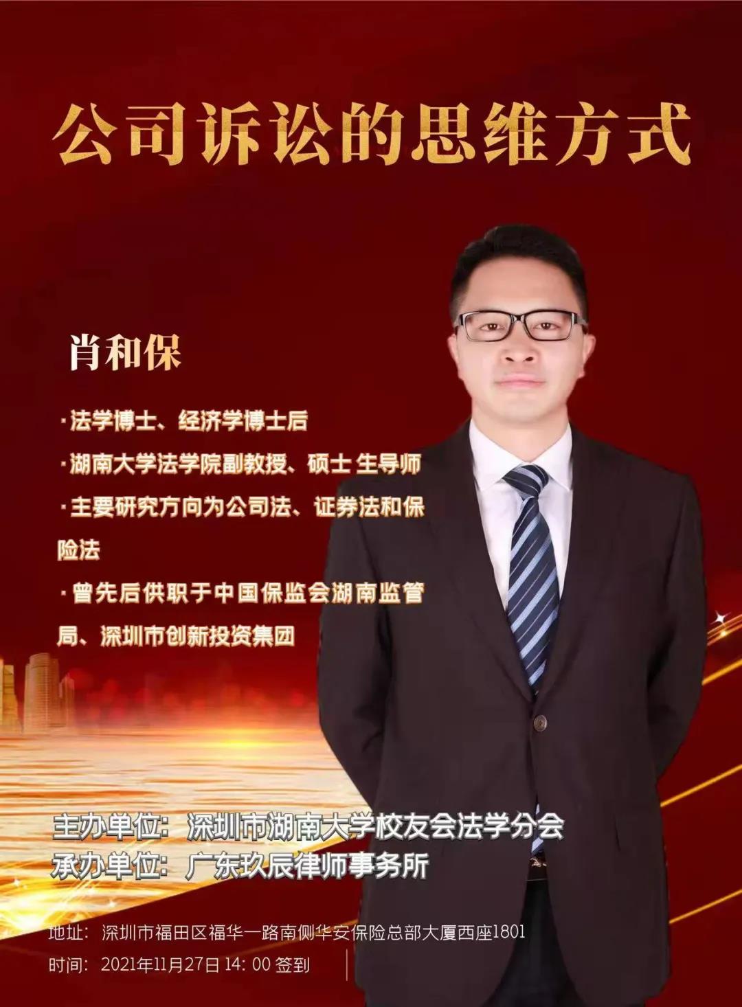 2021年11月27日,玖辰学堂第十一期讲座如期而至,玖辰所特邀请到法学博士、经济学博士后、伟德国际1949始于英国副教授肖和保老师现场畅谈在公司诉讼中的思维方式。