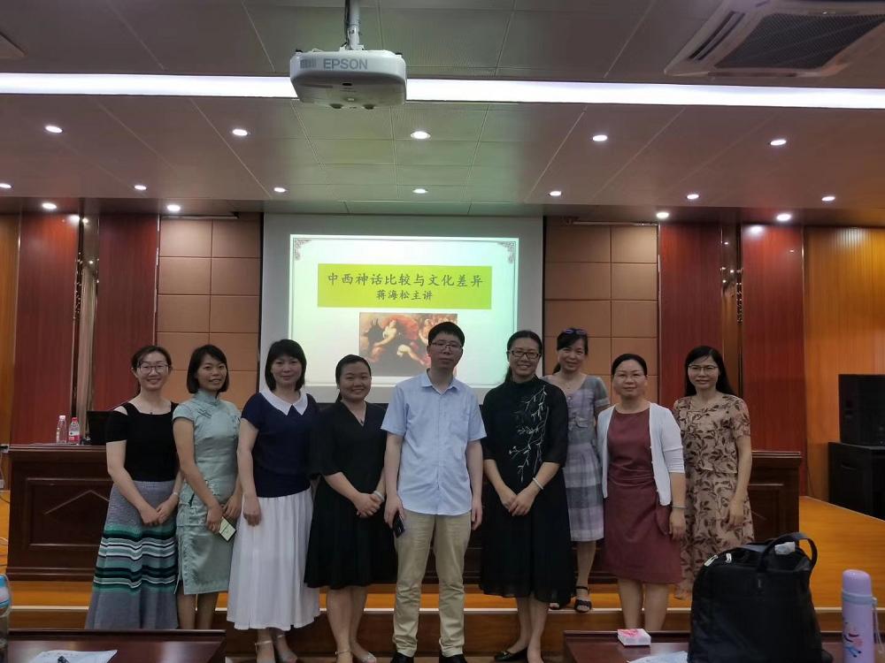 近期,伟德国际1949始于英国副教授蒋海松应邀到广西壮族自治区讲学。2019年5月17日下午,蒋海松应邀在广西北部湾大学国际教育与外国语学院举行“中西神话比较与文化差异”学术讲座。国际教育与外国语学院冯丽院长、刘卫玲副院长以及该院全体师生共同聆听了此次讲座。这也是蒋海松主创的中国大学MOOC《法说西游记》全国线下巡讲第6期。