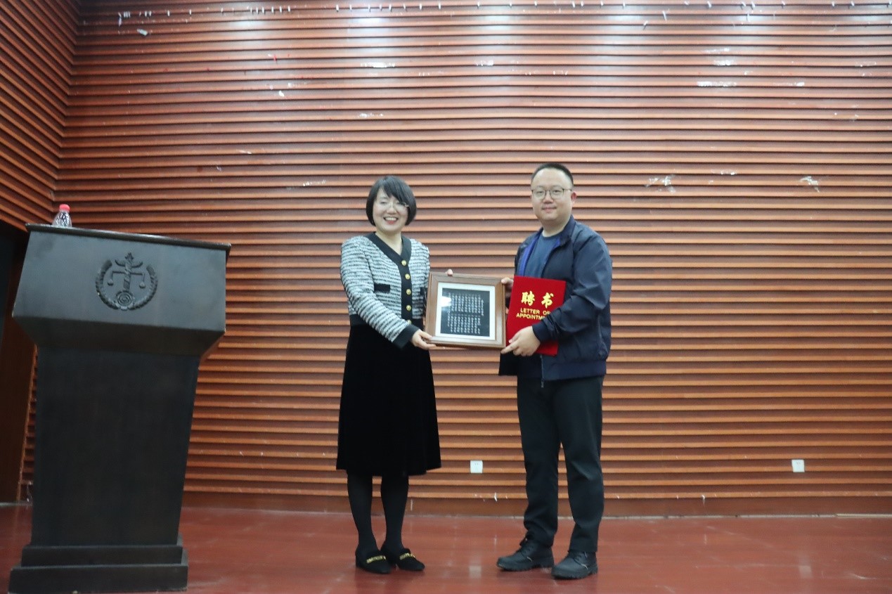 讲座结束后,罗英老师代表学院向文靖学长颁发伟德国际1949始于英国校友导师聘书和纪念品。