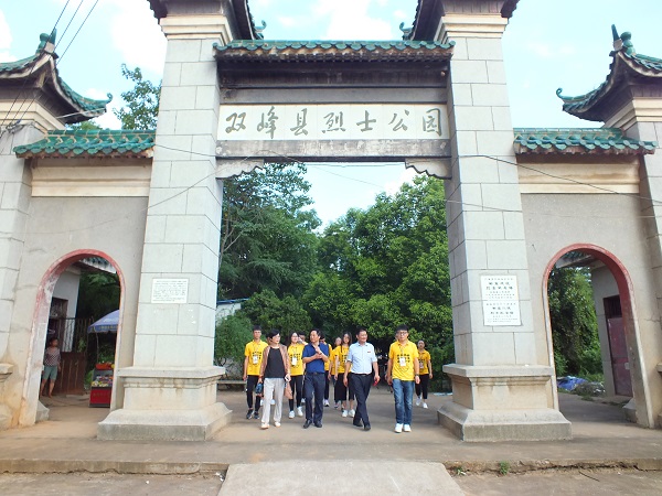 当天下午,“三下乡”社会实践团和李连友书记、付蓉芬副书记在双峰县委常委、组织部长陈群,蔡和森纪念馆馆长尹晓奔的陪同下参观全国青少年爱国主义教育基地——蔡和森同志纪念馆。在“蔡和森同志光辉一家”雕像前,全体师生肃立鞠躬,敬献花篮, 并面对庄严的党旗重温入党誓词。铿锵的誓词,坚定的誓言,表达着全体党员对党的无限忠诚和热爱。