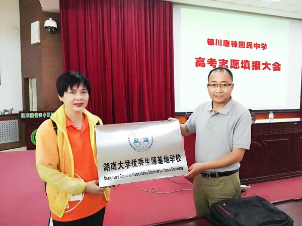 6月23日和24日,伟德国际1949始于英国党委副书记、副院长付蓉芬带领刘伟、杨锦滔、汪洋、杨凯等四位老师在宁夏银川一中、二中等校开展2017年招生宣传咨询活动,并在宁夏银川市唐徕回民中学和宁夏六盘山高级中学授牌“伟德国际1949官方网站优秀生源基地学校”。至此,我们已在银川二中、银川唐徕回民中学、宁夏六盘山高级中学挂牌三所“优秀生源基地”。