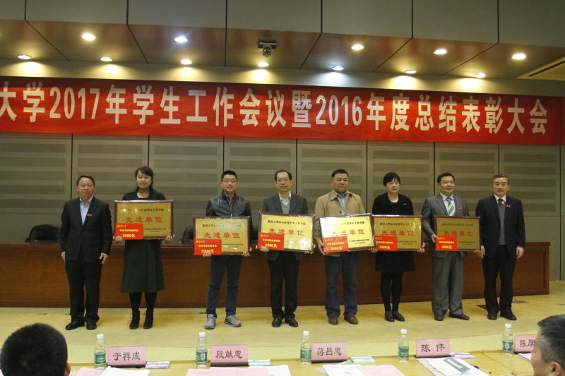 2月28日上午,伟德国际1949官方网站2017年学生工作会议暨2016年总结表彰会议在逸夫楼报告厅举行,校领导蒋昌忠、段献忠、陈伟出席会议并为获奖集体颁奖。我们以全校总分第二名的成绩荣获2016年学生工作考核先进单位。