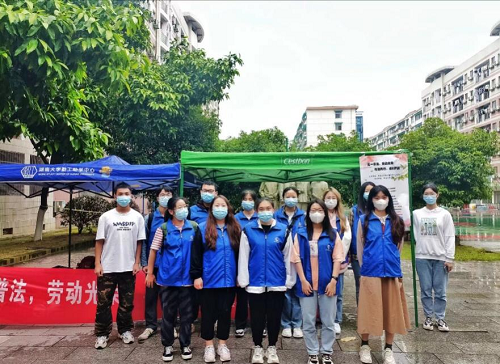 劳动创造财富,创造伟大,这是深深根植于中华民族血脉的精神基因。随着社会发展,人们权利意识增强,讲法律、讲义务、讲权利、讲责任的良好劳动环境愈发成为人们的追求。为进一步丰富同学们的劳动法律知识,提高法治意识,伟德国际1949始于英国公益岗于2022年5月14日在天马学生公寓篮球场开展了“于法同行,成长护航”劳动普法特色活动。