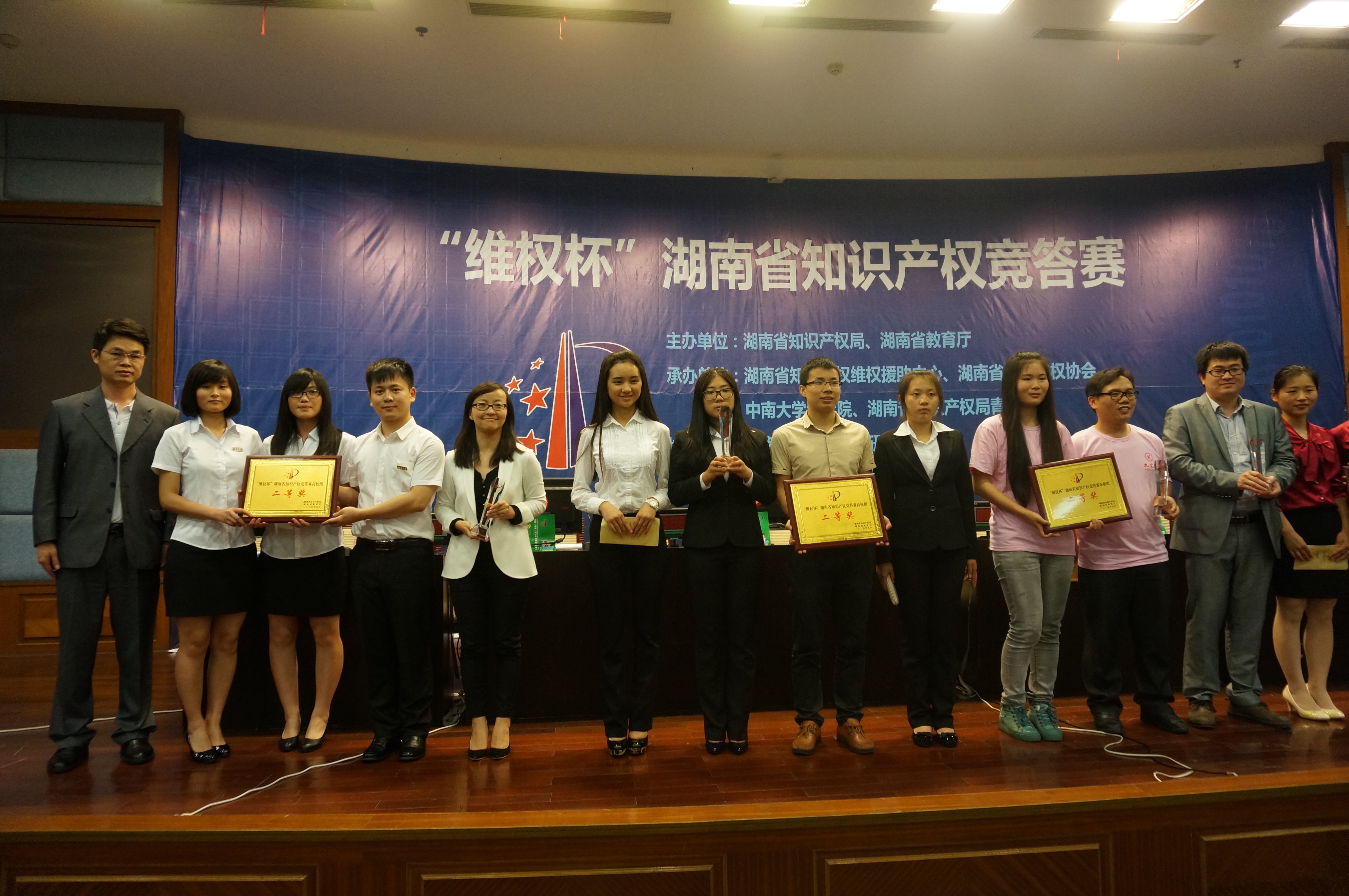 2015年5月23日,由湖南省知识产权局、湖南省教育厅共同主办的“维权杯”湖南省知识产权竞答赛决赛在中南大学校本部国际报告厅举行。伟德国际1949始于英国曹井超、刘玉荣、张正、胡尉红四位同学代表伟德国际1949官方网站参赛,在指导老师喻玲副教授带队下,经过激烈角逐,斩获高校组亚军。