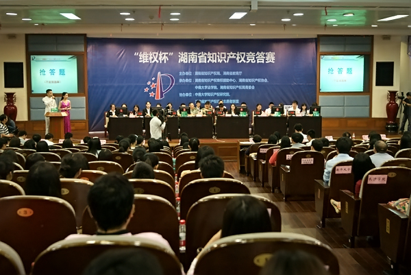高校组决赛分为必答题、抢答题、你问我答以及风险题4个环节,命题主要涉及《专利法》、《湖南省专利条例》、《商标法》、《著作权法》和《反不正当竞争法》等知识产权相关政策法律法规。我们代表队在现场湖大拉拉队“千年学府,百年名校。实事求是,敢为人先”的齐声激励下,反应迅速,表现卓越,夺得大赛亚军。国防科技大学、南华大学分获冠、季军。