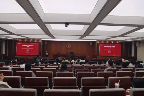 (图为会议主持人介绍本次保研经验交流会的主题与分享嘉宾)