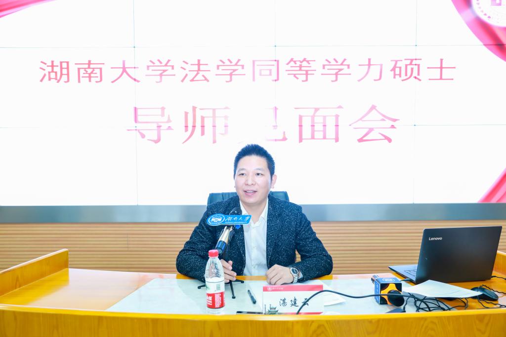 讲座结束后湛建云副院长主持法学同等学力硕士导师见面会,并逐一介绍了到场的屈茂辉、罗英、肖和保、肖洪泳、刘辉、展鹏贺、周子实、周宇骏等导师的简历及研究方向,在场导师一 一分享了自己多年指导学位论文的经验和心得体会,并对在坐的同学们提出殷切期望。